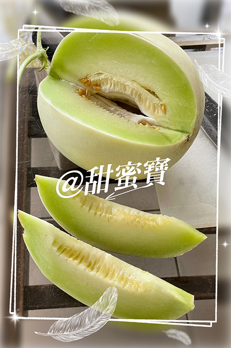 中大葉,粗蔓,中早生,植株長勢強旺, 開花後約40-45天採收。 果實橢圓,果皮淺青白色轉亮麗乳黃白, 果面光滑偶有稀疏網紋,果重約1.5-2.2公斤。 果肉厚,子腔小,可食部多,耐裂、耐貯運, 肉色青綠到淺綠,完熟糖度18度, 果熟甫採收,肉質脆細而爽口,經後熟數天後果肉軟綿多汁。 本品種在諸多國內外HONEYDEW品種對照中表現最脫俗拔粹! 適台灣南部國曆9-10月、1-2月定植。