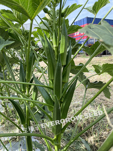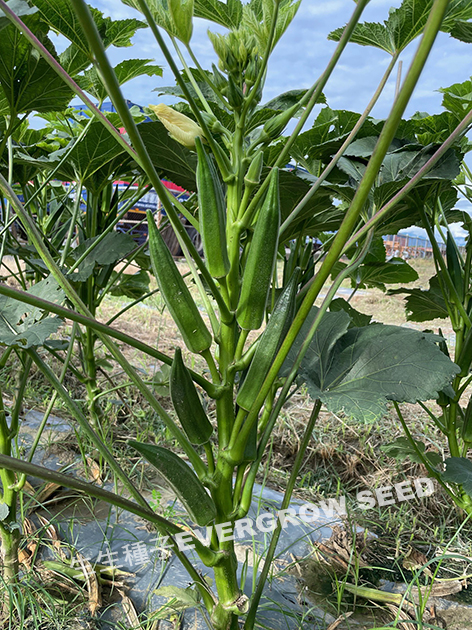 長勢強健、節間短,早花性 (定植到採約37天)、 耐溫變好種植、耐病毒收期長。 正五角果,果莢色深,色澤亮麗泛光澤且不易老化。 適收期約8.0×1.8公分,重15-20公克。 ※本品種長勢強,建議三幹整枝, 以增加單位面積產量,提高收益。