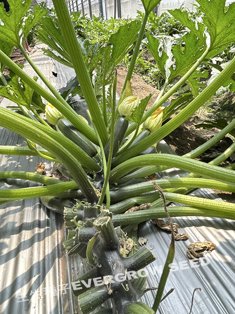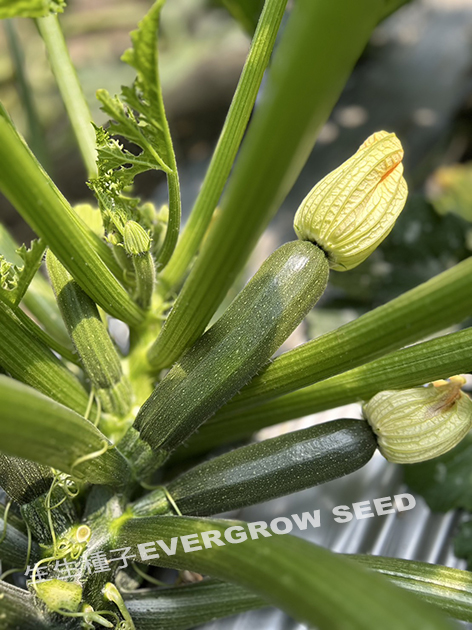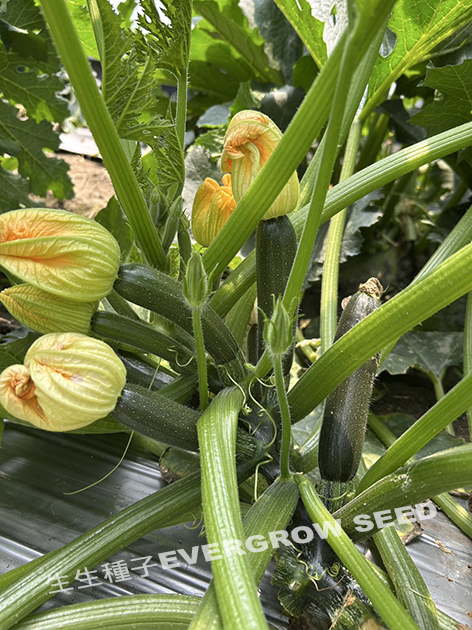 耐白粉 ‧ 雌性好 ‧ 果型美 植株生長勢強健、耐白粉病、耐寒, 株型直立至平展型,方便摘取果實; 適收期果實長約18公分,寬4.7公分,果重約280公克、 深綠色果皮,果型成雙頭齊,果表略有稜褶; 定植後約30-35天開花,花後約5-7天可採收。